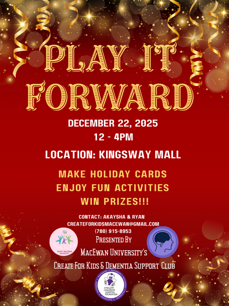 Presented by MacEwan University’s Create For Kids and Dementia Support Club, this is a free, family-friendly event to enjoy a holiday photo booth, activities, and the chance to win prizes.