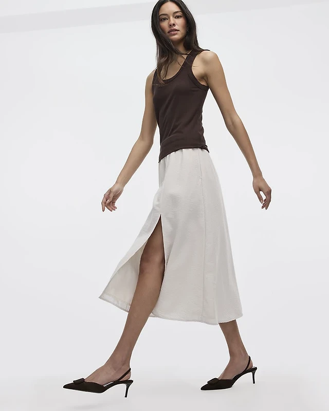 Rib Knit Sleeveless Top & Front Slit Midi Skirt