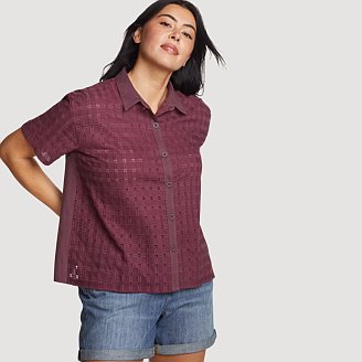 Recycled Fibers Chrysanthemum Print Lace Trim Button-down Shirt