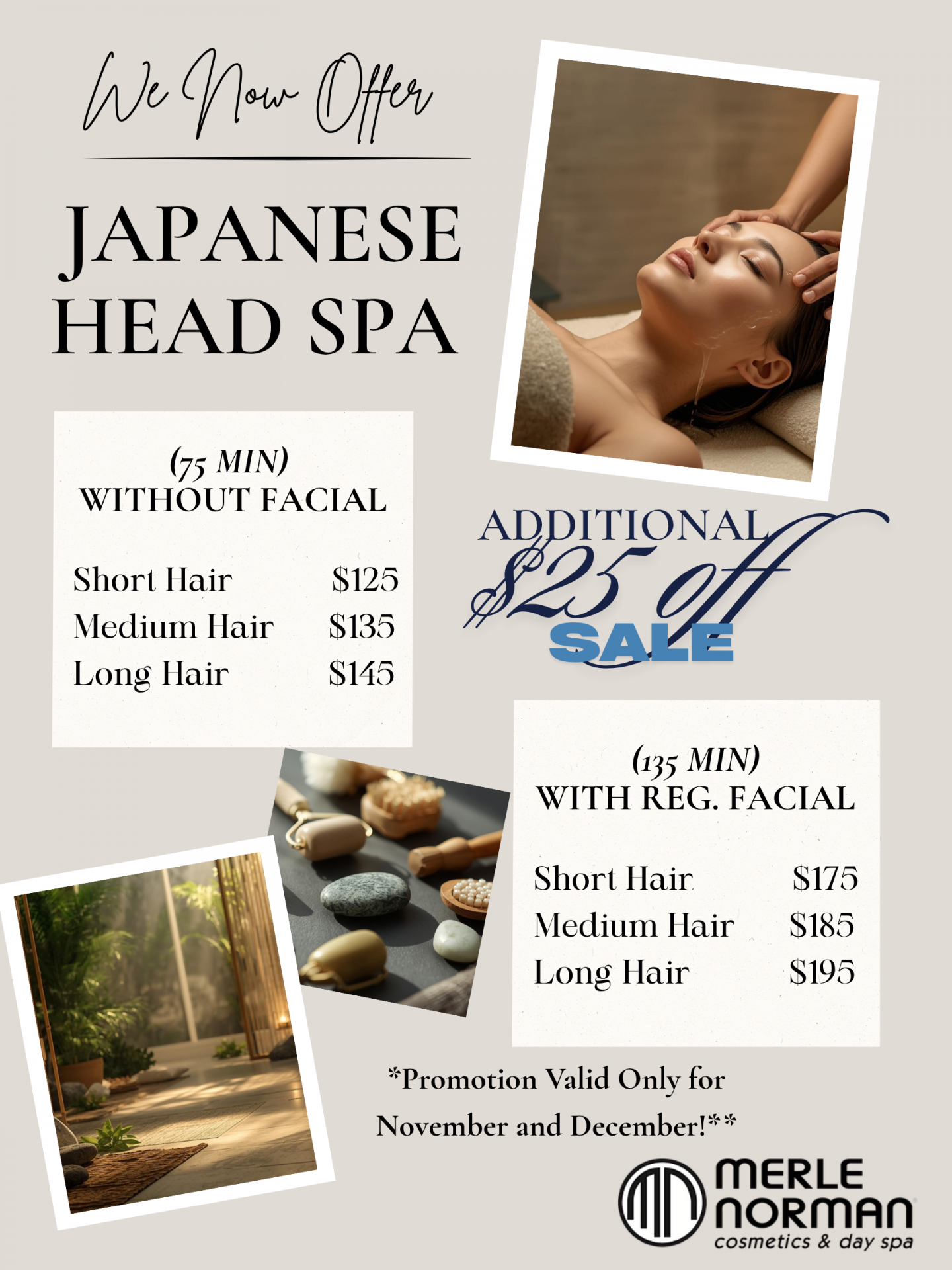 Sat, 1 Nov 2025 - Wed, 31 Dec 2025Receive $25 off our new Japanese Head Spa services. Promotion includes the service with or without facial.