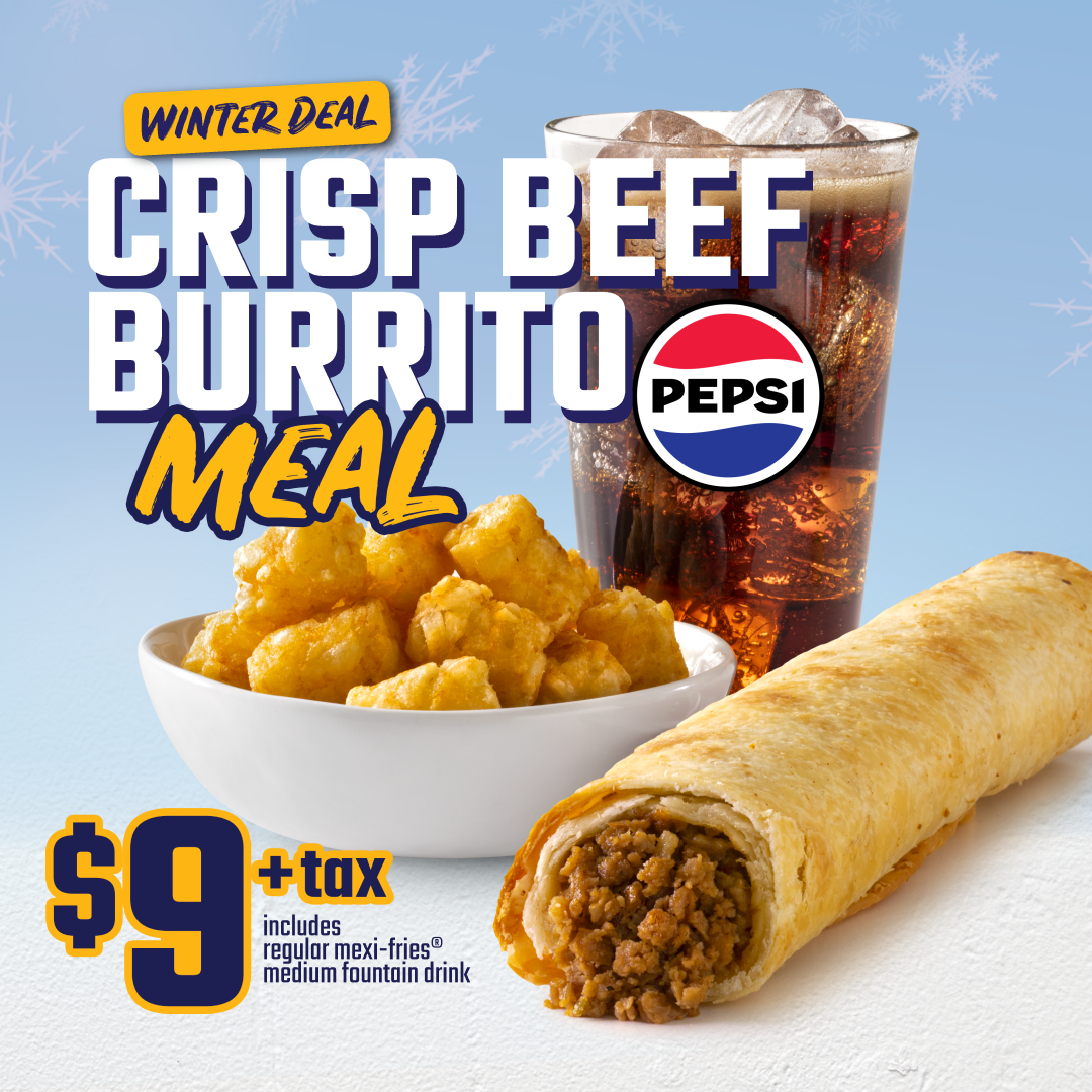 Thu, 1 Jan 2026 - Sat, 28 Feb 2026Warm up this season with our Winter Deal! This crave-worthy combo features a golden, crispy beef burrito paired with regular Mexi-Fries® and a medium fountain drink. Everything you need to get through the cold months deliciously. Available in-store and for pickup or delivery through the TacoTime Canada App.