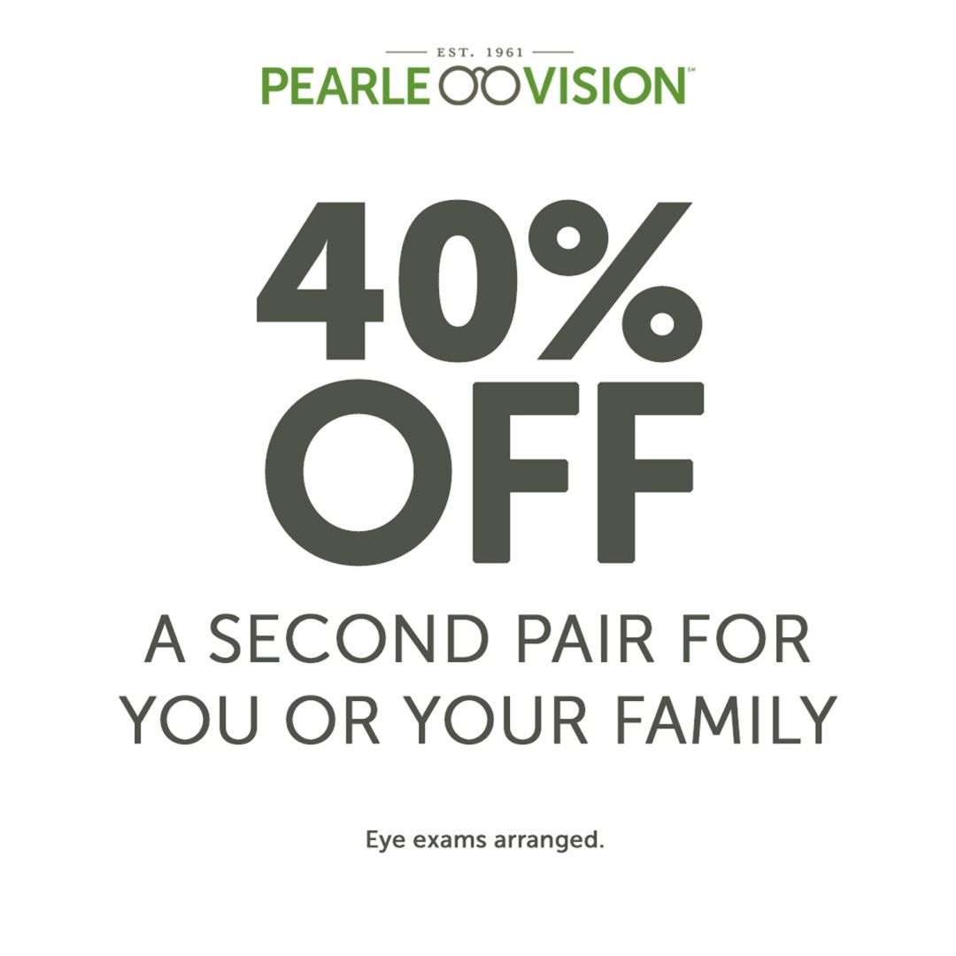 40% off second pair of eyewear for you and your family with the purchase of a first pair. This offer cannot be combined with any other offers. See in store for more details.