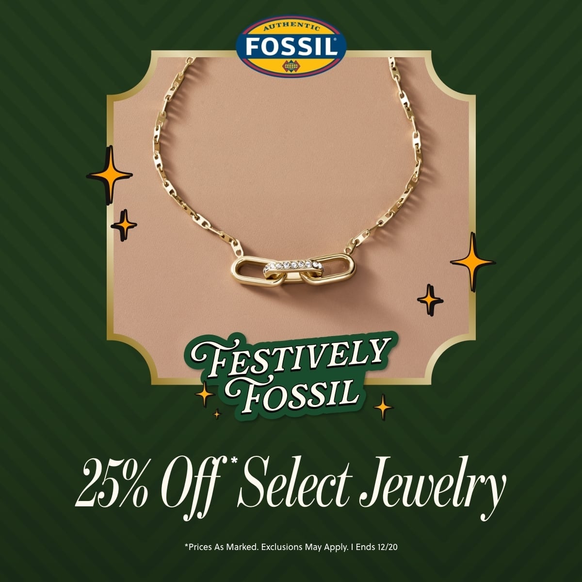 Mon, 15 Dec 2025 - Sun, 21 Dec 2025On everyone's wishlist? Jewelry to light up the holidays. Save 25% on select styles for one week only. Shop now at Fossil. *Prices As Marked. Exclusions May Apply.